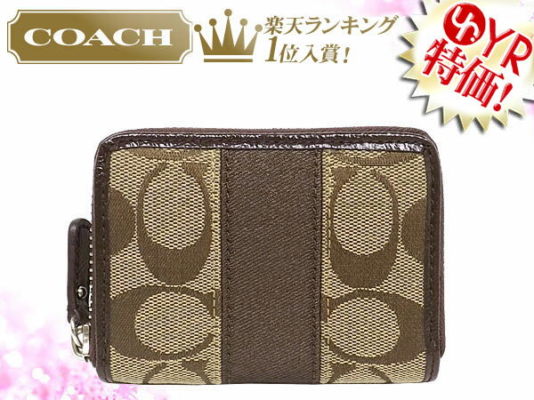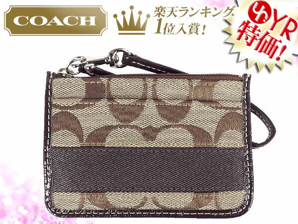 コーチ COACH★財布(コインケース)F61876 カーキ×マホガニー シグネチャー ストライプ ミディアム コイン ウォレット アウトレット品激安%OFF!レディース【楽ギフ_包装】【YDKG-m