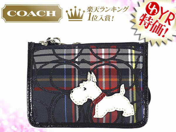 コーチ COACH★財布(コインケース)F48073 マルチカラー シグネチャー ストライプ タータン スコッティ ドッグ ID スキニー アウトレット品激安%OFF!レディース【楽ギフ_包装】【YD